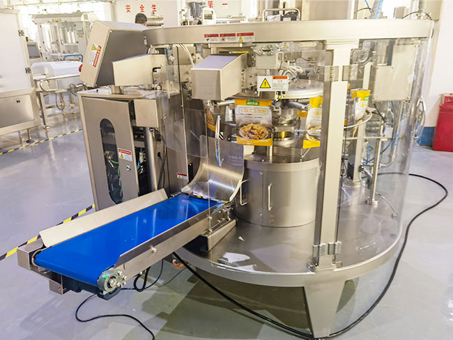 腌漬肉滑自動(dòng)包裝機(jī)是通過U型料箱進(jìn)行均勻攪拌,使其肉料更加的均勻,核心部分采用的是PLC可編程控制,它能夠?qū)崟r(shí)采集物料信息的重量,并通過軟件傳輸給顯示屏幕,讓用戶更加清晰了解生產(chǎn)過程,當(dāng)信息設(shè)定達(dá)到與預(yù)設(shè)重量信息一致時(shí),料箱停至供料,給袋機(jī)將旋轉(zhuǎn)至封口處,通過恒溫加熱的方式,快速完成封口條件,在冷卻后快速定型,然后由腌漬肉滑自動(dòng)包裝機(jī)的輸送帶送出,完成全部的生產(chǎn)過程。